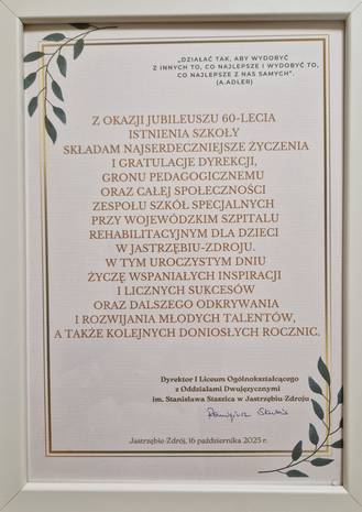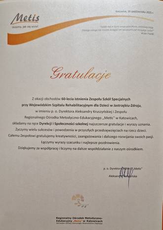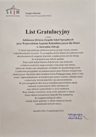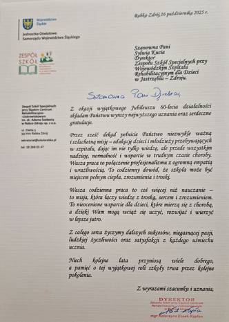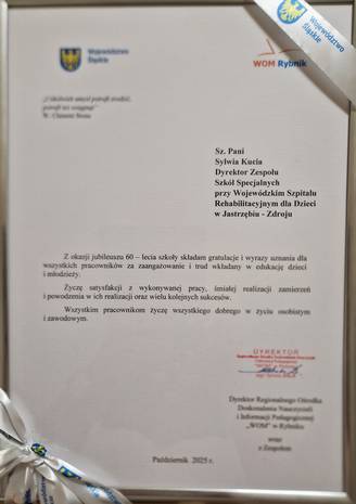 Jubileusz 60-lecia Zespołu Szkół Specjalnych przy Wojewódzkim Szpitalu Rehabilitacyjnym dla Dzieci w Jastrzębiu-Zdroju