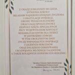 Podczas uroczystości na ręce Pani Dyrektor wręczono pamiątkowe dyplomy i podziękowania od zaproszonych gości. Słowa uznania skierowano także do całej społeczności szkolnej za codzienny trud, cierpliwość i serce wkładane w pracę z dziećmi.